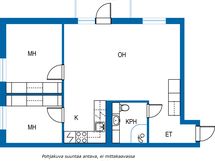 - Ikkunoiden ilmansuunnat: kaakko, lounas, Lisätietoa ikkunoista: Ikkunoissa on sälekaihtimet.