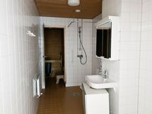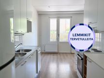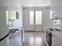 Läpikuljettavasta keittiöstä on käynti suoraan terassille, mikä tekee arjesta sujuvaa. Keittiön varustukseen kuuluu astianpesukone. Asunnon lattiat ovat laminaattia ja seinät on maalattu. Tilavassa kylpyhuoneessa on liitännät pyykinpesukoneelle.