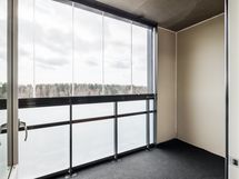 Moderni yksiö suurella lasitetulla parvekkeella