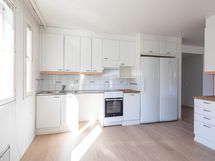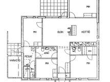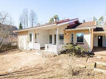 Erillistalo yhdessä tasossa. Toimiva perheasunto, oma sauna, iso piha ja säilytystilaakin on hyvin. Rauhallinen sijainti omakotitaloalueella ja turvallinen koulumatka. Sähkölämmitys.