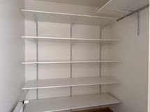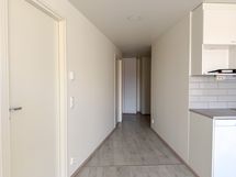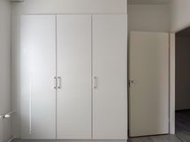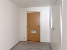Eteisestä on käynti vaatehuoneeseen, joka tarjoaa säilytystilaa ja helpottaa kodin järjestelyä.