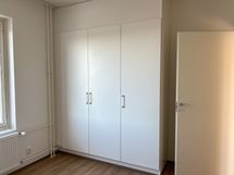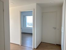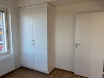 Eteisestä on käynti vaatehuoneeseen, joka tarjoaa säilytystilaa ja helpottaa kodin järjestelyä.