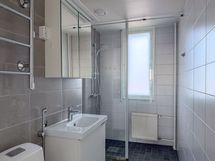Kylpyhuone on täysin laatoitettu tyylikkäästi ja sieltä löytyy paikka pyykinpesukoneelle sekä käytännöllinen lasinen suihkuseinä. Lasitetulla parvekkeella voi nauttia ulkoilmasta lähes ympäri vuoden. Uusi taloyhtiö takaa huolettoman, modernin ja tyylikkään asumisen keskeisellä sijainnilla Tikkurilassa.