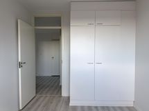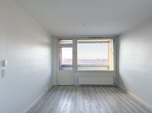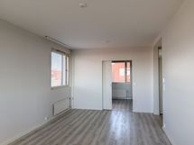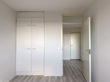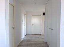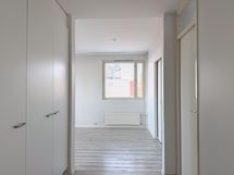 Tilava olohuone avautuu suurista ikkunoista tulevaan luonnonvaloon ja tarjoaa helpon mahdollisuuden kalustaa tila omien tarpeiden mukaan. Asunnosta löytyy myös vaatehuone, joka tuo lisää arjen sujuvuutta. Vaalea lattia ja modernit materiaalivalinnat tuovat kotiin raikkaan ja yhtenäisen ilmeen.