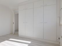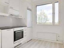 Keittiö sijaitsee omassa rauhallisessa nurkassaan ja on hyvän kokoinen kokonaisuus, jossa on runsaasti työskentelytilaa sekä ikkuna valoa tuomassa. Varusteluun kuuluvat induktioliesi, valkoinen välitilan laatta, harmaa työtaso ja integroitu astianpesukone. Makuuhuone on tilava ja tarjoaa paljon kaappitilaa, joka helpottaa säilytystä. Uusi taloyhtiö viimeistelee modernin ja helpon asumisen.