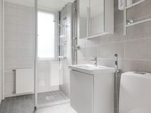 Tässä valoisassa kaksiossa on toimiva ja käytännöllinen pohjaratkaisu, joka tekee arjesta sujuvaa. Tilava eteinen toivottaa tervetulleeksi kotiin ja kylpyhuone on mukavan kokoinen, täysin laatoitettu ja varustettu ikkunalla, joka tuo luonnonvaloa tilaan ja mahdollistaa helpon tuuletuksen. Suihkussa on lasiset, taiteltavat suihkuseinät, jotka tuovat tilantuntua. Asunnon vaalea lattia sekä suuret ikkunat korostavat kodin raikkautta ja valoisuutta. Lasitettu parveke tarjoaa lisää tilaa vuoden ympäri.
