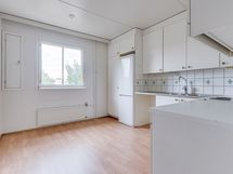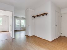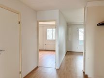 Huoneet on sijoiteltu eri puolille asuntoa, mikä tekee kodista toimivan vaihtoehdon perheelle, työhuonetta kaipaavalle tai kimppa-asunnoksi. Säilytystilaa löytyy reilusti vaatehuoneesta ja parveke tarjoaa mahdollisuuden luoda kesäksi oma viihtyisä keidas. Eteisessä ja olohuoneessa on laminaattilattia, makuuhuoneissa sekä keittiössä muovimattolattia. Keittiössä on valkoiset kaapistot, harmaat työtasot ja astianpesukone. Kylpyhuoneessa on vaalea laatoitus ja mahdollisuus pyykinpesukoneelle. Toisen makuuhuoneen seinät maalataan valkoisiksi ennen muuttoasi.