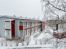 Puuverhoiltu luhtikäytävätalo Vantaan Hakkilassa.