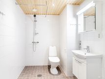 Asunnossa avokeittiö olohuoneen yhteydessä. Tässä laadukkaassa huoneistossa lattiat ovat laminaattia ja keittiön työtaso trendikästä betonikuvioitua laminaattia. Keittiö on varustettu astianpesukoneella. Laatoitetussa kylpyhuoneessa tilavaraukset sekä pyykinpesukoneelle että kuivausrummulle. Kätevää säilytystilaa löytyy allas- ja peilikaapista.