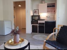 Vapautumassa viihtyisä kalustettu yksiö. Näkymät vehreälle pihalle ja kohti vesitornia. Ranskalainen parveke.