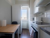 This spacious studio apartment, located on the third floor of an elevator building, features a charming sleeping alcove, a spacious living room, and a practical kitchen. The apartment's windows face the peaceful inner courtyard, allowing you to enjoy a nice view right in the city center without traffic noise!