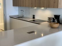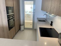 - Paljon kaappitilaa, Paljon työskentelytilaa, Kivitasot, Astianpesukone, Integroidut koneet, Keraaminen liesi, Liesituuletin, Liesi tai uuni erikseen, Jääkaappi, Pakastin