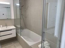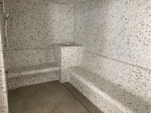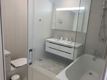 - Suihku, Useita suihkuja, Pesukone, Kuivausrumpu, Laattaseinä, Laattalattia, Halogeenivalot