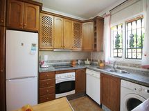 Keittiössä on kaikki lomailijan vaatimat varusteet ja paljon muutakin. Siellä on mm. astianpeskone, pesukone, jää/pakastekaappi, uuni, liesitaso, mikroaaltouuni ym.