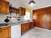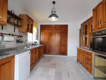 Keittiö on tämän asunnon helmi. Se on todella suuri ja siellä on varmasti kaikki varusteet mitä lomailija tarvitsee; astianpesukone, liesitaso, erillinen uuni, mikroaaltouuni, jää/pakastekaappi, kahvinkeitin ym.