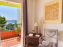Huoneiston iso parveke tarjoaa loistavan paikan rentoon lomailuun ja sieltä on hienot maisemat merelle.