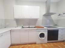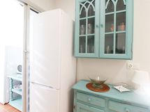 Keittiössä on hyvät varusteet, esim. liesitaso, uuni, jää/pakastekaappi, mikroaaltouuni, kahvinkeitin, vedenkeitin ym.