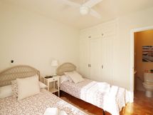 Toisessa makuuhuoneessa on parivuode ja huonesta pääsee parvekkeelle. Toisessa makuuhuoneessa on erilliset sängyt kahdelle. Huoneen yhteydessä on WC.
