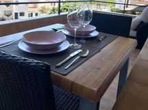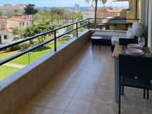 Huoneiston iso terassi on oivallinen paikka rentoon lomailuun. Sieltä aukeaa maisema merelle ja iltaisin terassilla voi ihailla komeita auringonlaskuja.