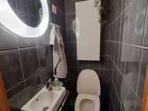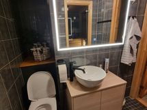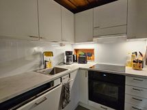Tilavassa, juuri remontoidussa keittiössä valmistuvat lomaruuat ja tiskivuoroista huolehtii tiskikone. Myös pyykinpesukone löytyy keittiöstä. Alakerrasta löytyy lisäksi kylpyhuonetilat, sauna ja WC x 2.