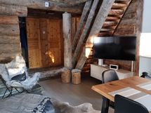 Alakerrassa on 2 makuuhuonetta, joissa molemmissa on kaappitilaa. Toisessa makuuhuoneessa on 160cm leveä parisänky ja toisessa alasänky 120cm ja yläsänky 80cm. Olohuoneessa on myös levitettävä vuodesohva sekä älyTV. Avotakka luo viihtyvyyttä ja lämmittää paukkupakkasilla. Mökissä on myös ilmalämpöpumppu sekä Wifi.