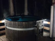 The main cabin and sauna cabin have air heat pumps for heating/cooling.
