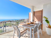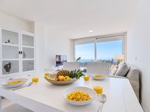 Asunto sijaitsee Fuengirolan ja Benalmadenan rajalla, tunnetulla Higueronin alueella. Tässä kahden makuuhuoneen asunnossa yöpyy mukavasti 4 henkilöä. Tilavassa avokeittiössä on upea kokkailla samalla seurustellen perheen ja ystävien kanssa ja nauttien upeista maisemista merelle, Fuengirolan keskustaan sekä satamaan. Terassilla on tilava kulmasohva, sekä ruokailuryhmä. Asunnon terassille aurinko alkaa paistamaan heti aamupäivällä ja paistaa melkein auringonlaskuun asti.