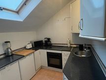 Kaksi makuuhuonetta, olohuone, keittiö, kaksi erillistä kylpyhuonetta, joissa molemmissa suihkut sekä terassi kattonäkymin. Valoisa ylin kerros, vinokattoja, korkeita huoneita ja kattoikkunoita. Läpitalon asunto.