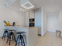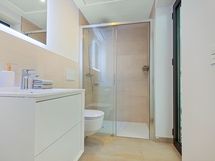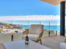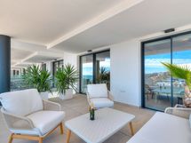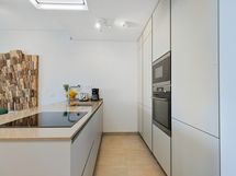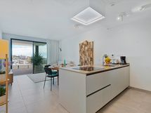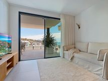 Huoneistossa on avara, avoin oleskelutila, jossa lattiasta kattoon ulottuvat ikkunat päästävät sisään runsaasti luonnonvaloa ja tarjoavat upeat panoraamanäkymät merelle ja ympäröiville vuorille. Voit herätä Välimeren auringonnousuun tai nauttia lasillisen viiniä tilavalla parvekkeella auringon laskiessa vuorten taakse.