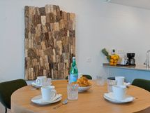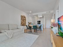 Moderni keittiö on täysin varusteltu uusimmilla kodinkoneilla, ja sen vieressä sijaitseva ruokailutila tarjoaa tilaa kuudelle hengelle – täydellinen kotona valmistetuille illallisille tai ystävien kestitsemiseen.