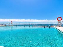 Uima-allas: Suuri yhteinen allas, josta on upeat merinäkymät – täydellinen paikka rentoutua ja nauttia auringosta.