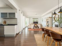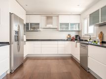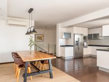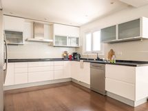 Täysin varustettu keittiö sopii täydellisesti omatoimiruokailuun. Keittiössä on modernit laitteet, kuten uuni, mikroaaltouuni, jääkaappipakastin, astianpesukone ja kahvinkeitin. Keittiössä on myös runsaasti työtasotilaa ja ruokailutila perheen aterioita varten.