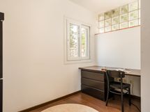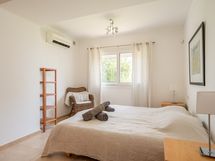 The villa has three spacious bedrooms, all with double beds. The master bedroom has an en-suite bathroom, closet space and large windows that allow plenty of natural light. The largest bedroom downstairs also has a sofa bed to sleep two guests if required. There is also a fireplace room with a sofa bed for two.