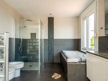Huvilassa on modernit kylpyhuoneet, mukaan lukien oma kylpyhuone päämakuuhuoneessa. Jokaisessa kylpyhuoneessa on modernit kalusteet ja runsaasti tilaa.