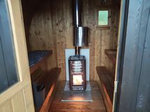 Lisäksi aivan rannan tuntumassa on erinomainen tynnyrisauna halkaisijaltaan peräti 240 cm (2025). Lämmitysaika on 20 min, ja löylyt ovat makoisat ilman kompromissia.