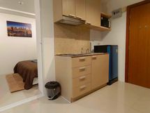 - keittiönurkka (mikro, vedenkeitin, liesitaso, jääkaappi, kahvinkeitin)