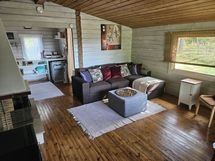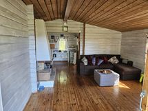 - Isohko tupa ja takkahuone, kaksi pienehkö makuualkovia, pukuhuoneeseen ja saunaan oma käynti samassa rakennuksessa ja erillinen erittelevä wc ja puuvaja.