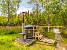 KYLPYPALJUT: Ranta-alueella on yhteensä 3 puilla lämpiävää kylpypaljua, joita voit vuokrata yhdessä tai erikseen. Kaksi paljua sijaitsee huvilan terassilla ja yksi rantasaunan edessä aivan Kaitalammin rannassa. Paljuihin pääsee puhtain jaloin terassia pitkin.