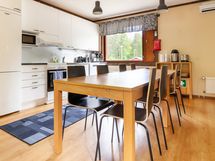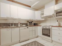 KEITTIÖT: Molemmissa kerroksissa on tavanomaisin ruoanlaitto- ruokailu- ja tarjoiluvälinein varustetut tupakeittiöt. Astiastot löytyvät vähintään 50 henkilön ruokailuun. Keittiöissä varusteina ovat sähköliesi ja -uuni, iso jääkaappi, pakastin, astianpesukone, mikrouuni, Moccamastereita, vedenkeittimiä ja leivänpaahtimia. Alakerran avokeittiö sijaitsee saunaosaston vieressä, ja siitä on yhteys rantaterassin grillipaikalle.
