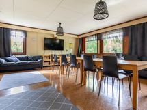 PÄÄSALIT JA OLESKELU/KOKOUSTILAT: Yläkerrassa sijaitseva noin 50 neliömetrin laajuinen pääsali ja avokeittiö tarjoaa sohvineen ja ruokailuryhmineen kokous-, oleskelu- ja ruokailutilaa noin 30 henkilölle. Yläkerran pääsalissa on 65 tuuman taulu-tv, jota voidaan hyödyntää kokousnäyttönä. Kokousvieraidemme käytössä myös iso valkotaulu.