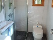 Rakennuksessa on olohuone varaavalla takalla, kaksi makuuhuonetta (sängyt 160 ja 140 cm), avokeittiö ja kylpyhuone/WC, jossa on myös pyykinpesukone.