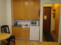 Pienoiskeittiö, jääkaappi, mikro, hella, kahvinkeitin, leivänpaahdin, vedenkeitin perusastiasto, tv, suihku, ilmastointilaite, parveke, nukkumapaikat neljälle. Omat liinavaatteet ja pyyhkeet mukaan. Ikaalinen Spa päärakennus n. 280 m päässä.