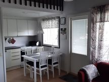 Kaunispään etelärinteellä siisti lomahuoneisto max. 5 hengelle. Valaistulle ladulle pääsee suoraan pihasta. Laskettelukeskukseen on matkaa n. 2 km. Sesonkiaikoina sinne pääsee myös suksibussilla. Lentokenttäbussi kulkee 50 metrin päästä ja myös kaikki Saariselän palvelut, kaupat, ravintolat ym. ovat kävelymatkan päässä. Täällä et siis välttämättä tarvitse omaa autoa. Huoneiston alakerrassa on sauna, tilava kylpyhuone, erillinen wc, makuuhuone sekä toimiva tupakeittiö. Myös takka sekä vaatteiden kuivauskaappi löytyvät asunnosta. Yläkerrassa on 31 m2 parvi, jossa on makuupaikat kolmelle. Asunnon parveke on etelän suuntaan. Huoneistoon kuuluu myös oma lämpötolpallinen autopaikka (ei sähköautojen latausmahdollisuutta) sekä taloyhtiön yhteinen suksienhuoltotila roskakatoksen yhteydessä. Valitettavasti lemmikkieläimet eivät ole sallittuja vieraita. Tervetuloa nauttimaan Lapin luonnosta ja Saariselän upeista maisemista!