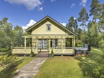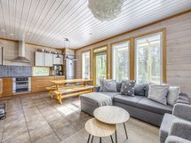 Mökistä löytyy myös varaava takka, kodinhoitohuone, lattialämmitys, hyvin säilytystilaa, pyykinpesukone, kuivauskaappi ja kaksi WC:tä.