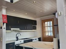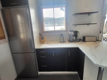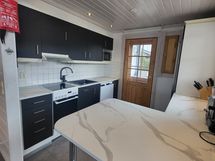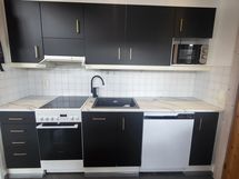 - Tilaa isolle ruokapöydälle, Suuri tiskipöytä, Laminaattitasot, Astianpesukone, Induktioliesi, Liesituuletin, Sähköliesi, Jääkaappi, Pakastin