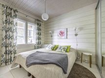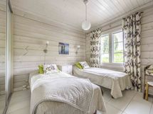 Tässä toimivassa huvilassa on kaikki mukavaan lomailuun. Sisääntulokerroksessa on kaksi erillistä makuuhuonetta, toisesta näkymä järvelle sekä erillinen wc. Molemmissa makuuhuoneissa 2 erillistä 80 cm sänkyä. Hyvin varusteltu keittiö: induktioliesi, tilava kylmiö/pakastin, astianpesukone, ruokailuryhmä 6-7 hengelle, laadukas astiasto 8-16 hengelle.