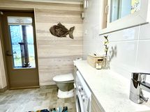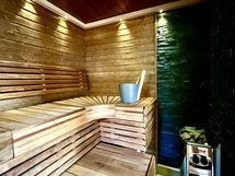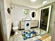 Alakerrassa sijaitsevat myös sauna- ja pesutilat sekä parivuoteella varustettu makuuhuone.