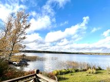 Piha sopii mainiosti lasten leikkeihin, sillä se on aidattu ja rauhallinen. Pihalla on lisäksi kahden auton autokatos, laituri (ja hiekkaranta).