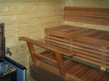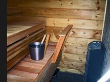 -kaksi saunaa, sähkölämmitteinen huvilan yhteydessä, puulämmitteinen rantasauna