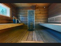 -kaksi saunaa, sähkölämmitteinen huvilan yhteydessä, puulämmitteinen rantasauna (9 m2)